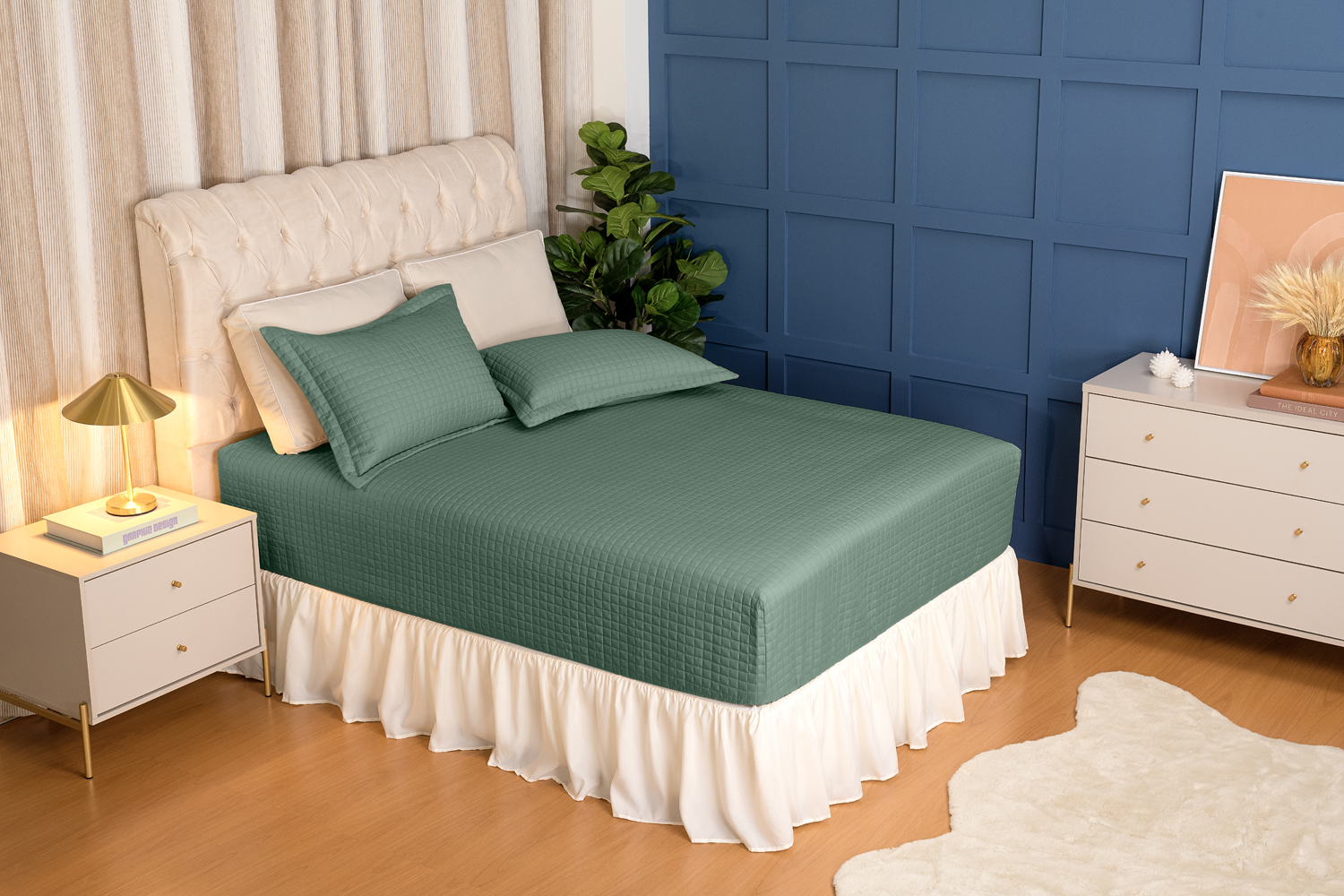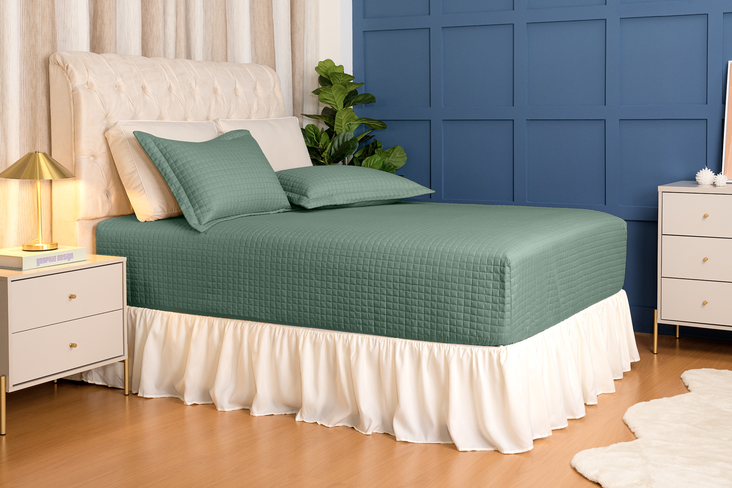 Confeccionado em percal com toque super macio, o cobre leito está disponível em várias cores modernas e versáteis que se adaptam facilmente a diferentes estilos de decoração. Escolha a sua entre Bege, Rosê, Gris, Verde Malva e Azul Petróleo e renove o visual do seu quarto com muito bom gosto.