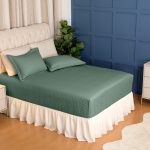 O diferencial fica por conta do elástico em todas as laterais do cobre leito, que garante a praticidade na hora de arrumar a bicama e manter tudo sempre no lugar. Além disso, os dois porta travesseiros com abas completam o visual elegante e harmônico do conjunto.