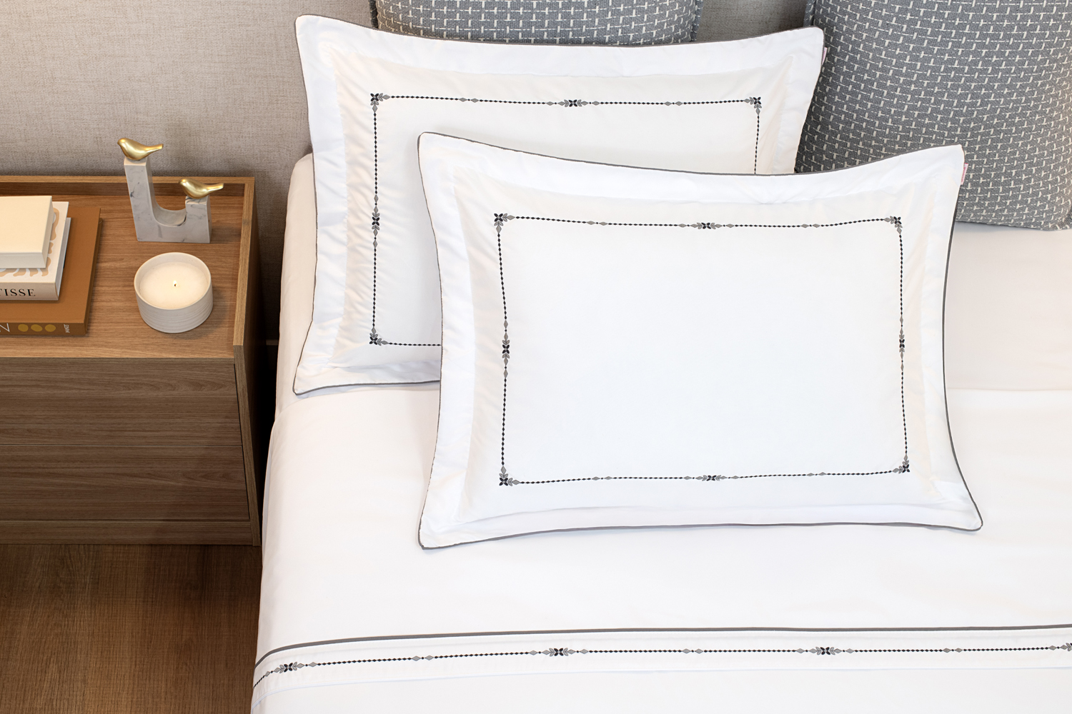 O jogo de cama Artemis é a escolha certa para quem ama um estilo clássico, com bordado elegante e um tecido aconchegante, resistente e muito confortável.