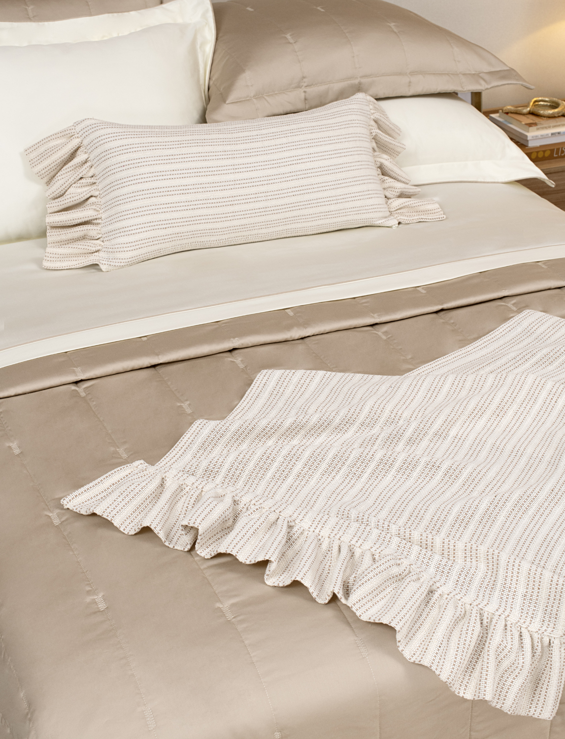 Confeccionada em Percal 400 fios 100% Algodão, a Coleção Theodora combina toque macio e acabamento refinado, com acessórios em tear com babados que acrescentam charme e leveza à composição. Em tons sofisticados, essa coleção apresenta um visual atemporal e acolhedor, ideal para quem busca elegância e conforto em perfeita harmonia